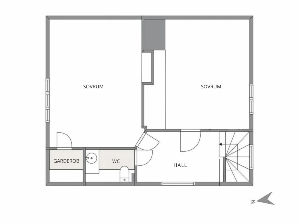 Vill du se hur semesterhuset Hus Björken är planerat? Planritningarna nedan ger dig en exakt bild av rummen, badrumsfaciliteterna och vägarna ut. På så sätt vet du precis vad du kan förvänta dig och kan redan nu bestämma vem som ska sova i vilket rum.